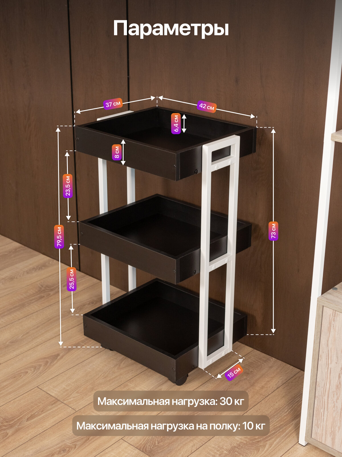 Трехъярусная этажерка «Ангара» — удобный и практичный предмет мебели, с помощью которого можно легко оптимизировать пространство квартиры, дома, офиса или дачи. Три яруса — это достаточное место для хранения декора, книг, кухонной утвари и моющих средств. Также изделие подойдет для размещения косметики, игрушек и инструментов. Бортики обеспечивают сохранность хрупких предметов, предотвращая их опрокидывание. Этажерка на колесиках мобильна и устойчива. Она не повреждает пол при перемещении и не скользит благодаря стопперам, которые препятствуют случайному движению конструкции. Компактную этажерку можно перемещать без лишних усилий. Особенно это удобно, когда нужно сделать в квартире перестановку или пропылесосить, помыть пол. Этажерка не занимает много места — она прекрасно подходит для стандартных однокомнатных квартир и квартир-студий. Ее можно разместить в спальне, гостиной, на кухне, в ванной. Также этажерка подойдет для ограниченной площади прихожей или балкона. Благодаря своему лаконичному дизайну этажерка для хранения отлично впишется в интерьеры в стилях лофт и минимализм. Этажерка пригодится и для обустройства рабочего пространства в офисе: это оптимальный вариант для хранения документов, папок, канцелярских принадлежностей и девайсов.