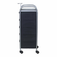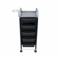 Комплектация: каркас из металла на пластиковых колесах, боковые пластиковые панели, выдвижные ящики, верхняя полка, металлический держатель для фена.
