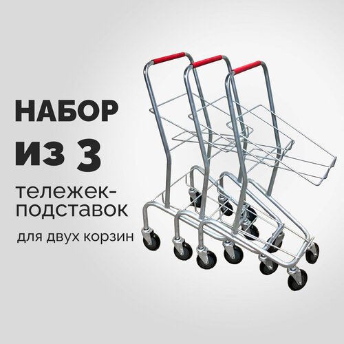 Тележка-подставка для двух корзин на колесах, цинк + лак, европейский тип основания, цвет пластика красный.