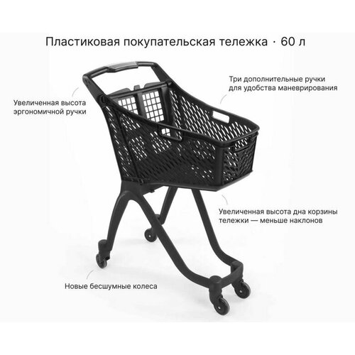 Купить Тележка покупательская пластиковая, 60л черная с доставкой по всей России. Тележка покупательская пластиковая, 60л черная: сравнение цен, характеристики, фото, актуальное наличие и цены.