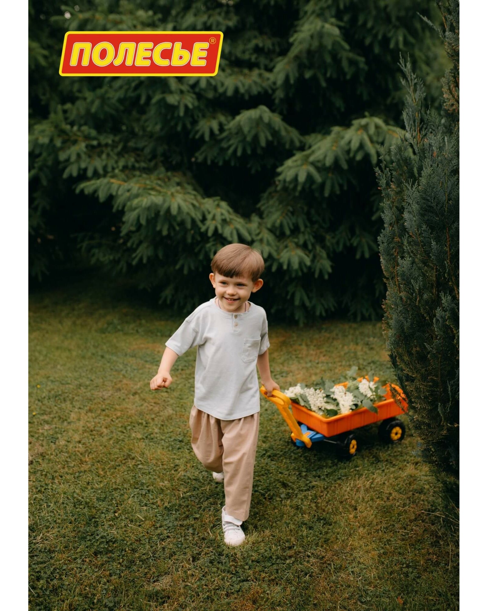 Самая большая тележка Полесья, ее длина 58 сантиметров.