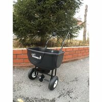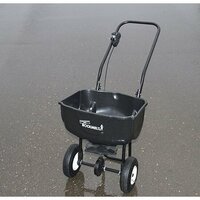 Предназначена для равномерного разбрасывания противогололедных реагентов, песка, семян, удобрений и прочих сыпучих материалов. Значительно сокращает время обработки больших территорий и делает ее менее утомительной (средняя скорость обработки составляет 100-150 м2 в минуту). Механизм плавного дозирования позволяет контролировать расход материалов, что приводит к существенной экономии - до 30% по сравнению с "ручным" разбрасыванием. Пневматические колеса диаметром 20 см позволяют тележке легче преодолевать препятствия.