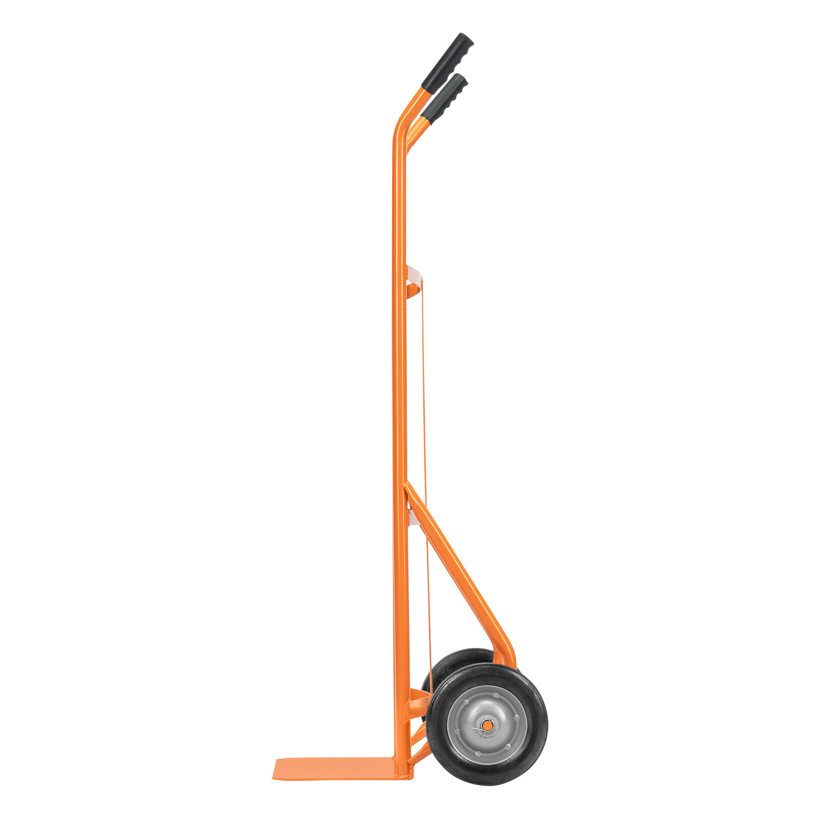 Ручная 2-колесная тележка Сибртех 68949 грузоподъемностью 130 кг, с платформой размером 355 х 230 мм, применяется для перемещения грузов массой до 130 кг. Толщина стали, из которой изготовлена рама, составляет 1,3 мм, что придает прочность конструкции. Тележка установлена на 2 колеса с литыми шинами, устойчивых к нагрузкам и механическим повреждениям. Приспособление используется на складах и производственных предприятиях. ПреимуществаЗащита от коррозии — рама покрыта порошковой эмалью. Возможность горизонтальной погрузки — изогнутые рукоятки могут служить опорами. Свободное перемещение нагруженной тележки — в каждом колесе имеется 2 шарикоподшипника, которые облегчают вращение.