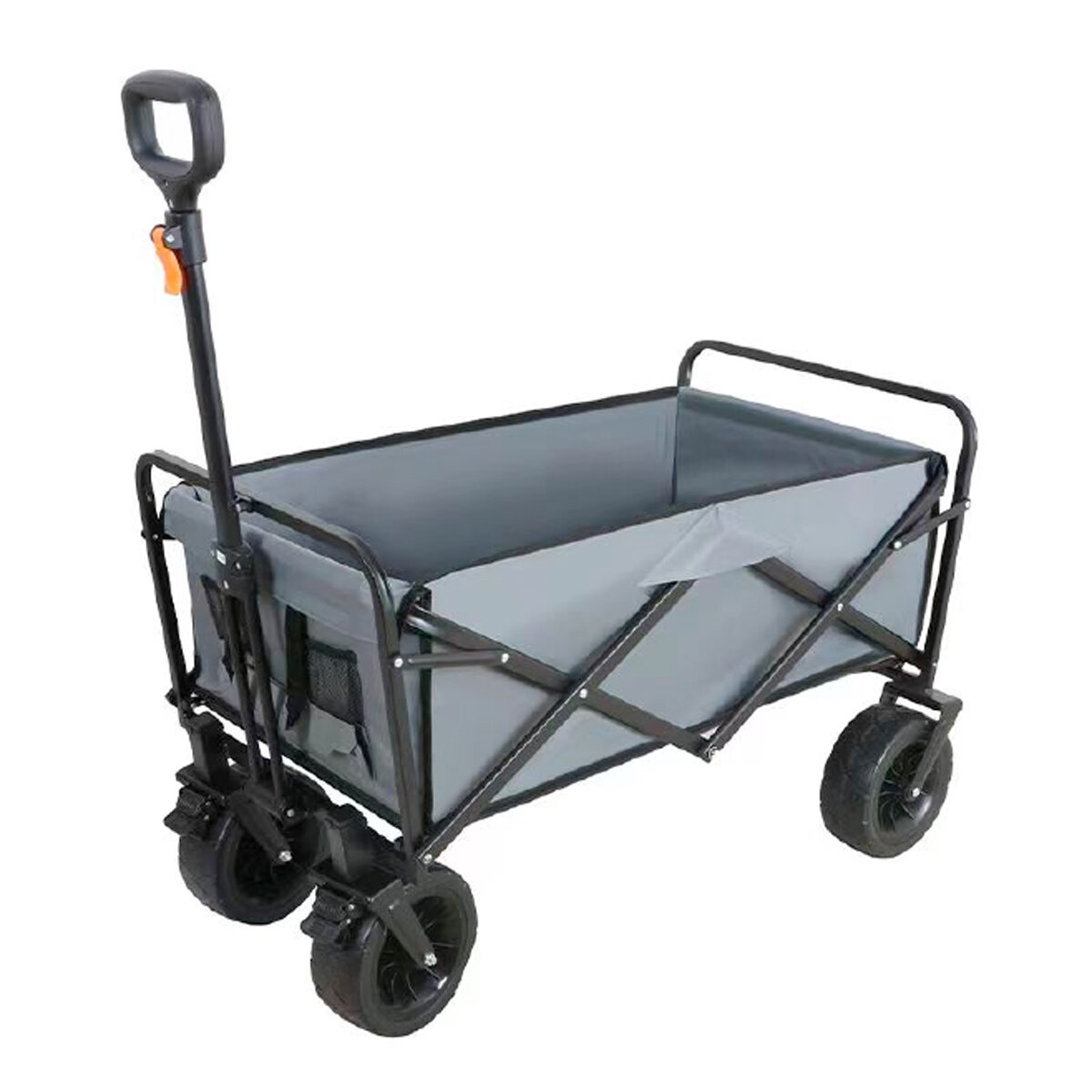 Благодаря широким колесам на шарикоподшипниках диаметром 203 мм тележка устойчива к опрокидыванию и может использоваться даже для передвижения по песку во время отдыха на пляже. Каркас выполнен из стали с защитным лаковым покрытием. Тележка поставляется полностью смонтированной и готова к использованию сразу после покупки!