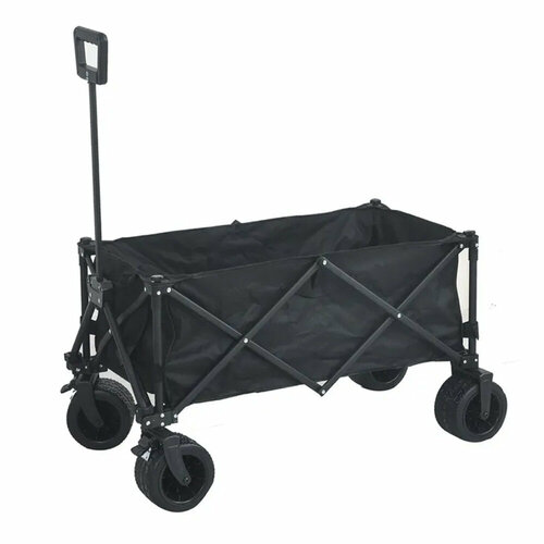 Она оснащена прочной стальной рамой и водоотталкивающим тканевым материалом (600D), который выдерживает тяжелые нагрузки и легко очищается. Она имеет прочные, крупные колеса, которые обеспечивают отличную маневренность и комфорт на разных типах поверхностей, включая песок и неровные грунты.