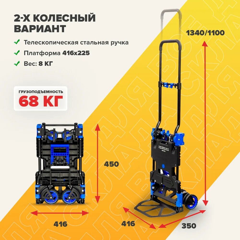 Тележка трансформер Magna cart FW-90TP является универсальным решением для перемещения грузов на короткие расстояния. Она хозяйственная, грузовая, складная и на колесах, что делает ее идеальным вариантом для каждого.