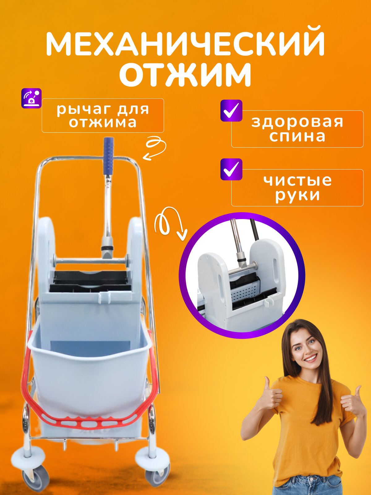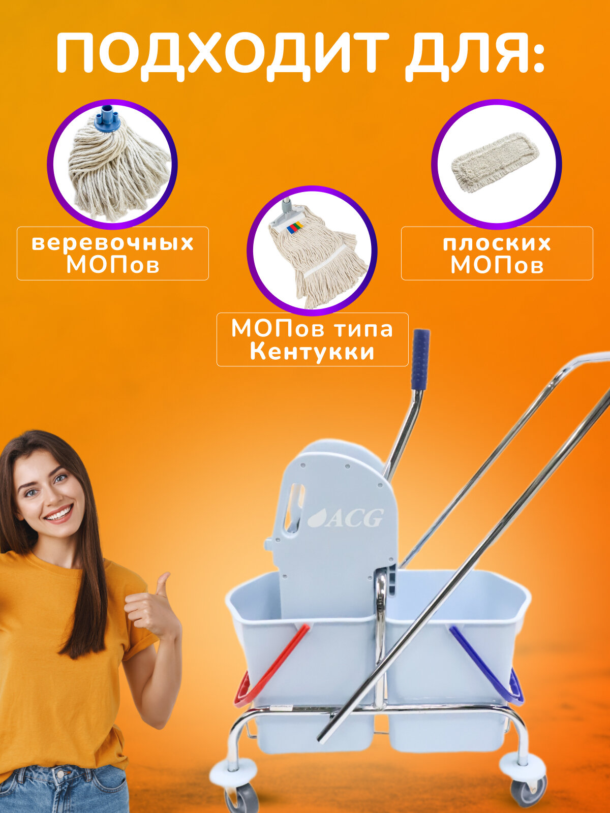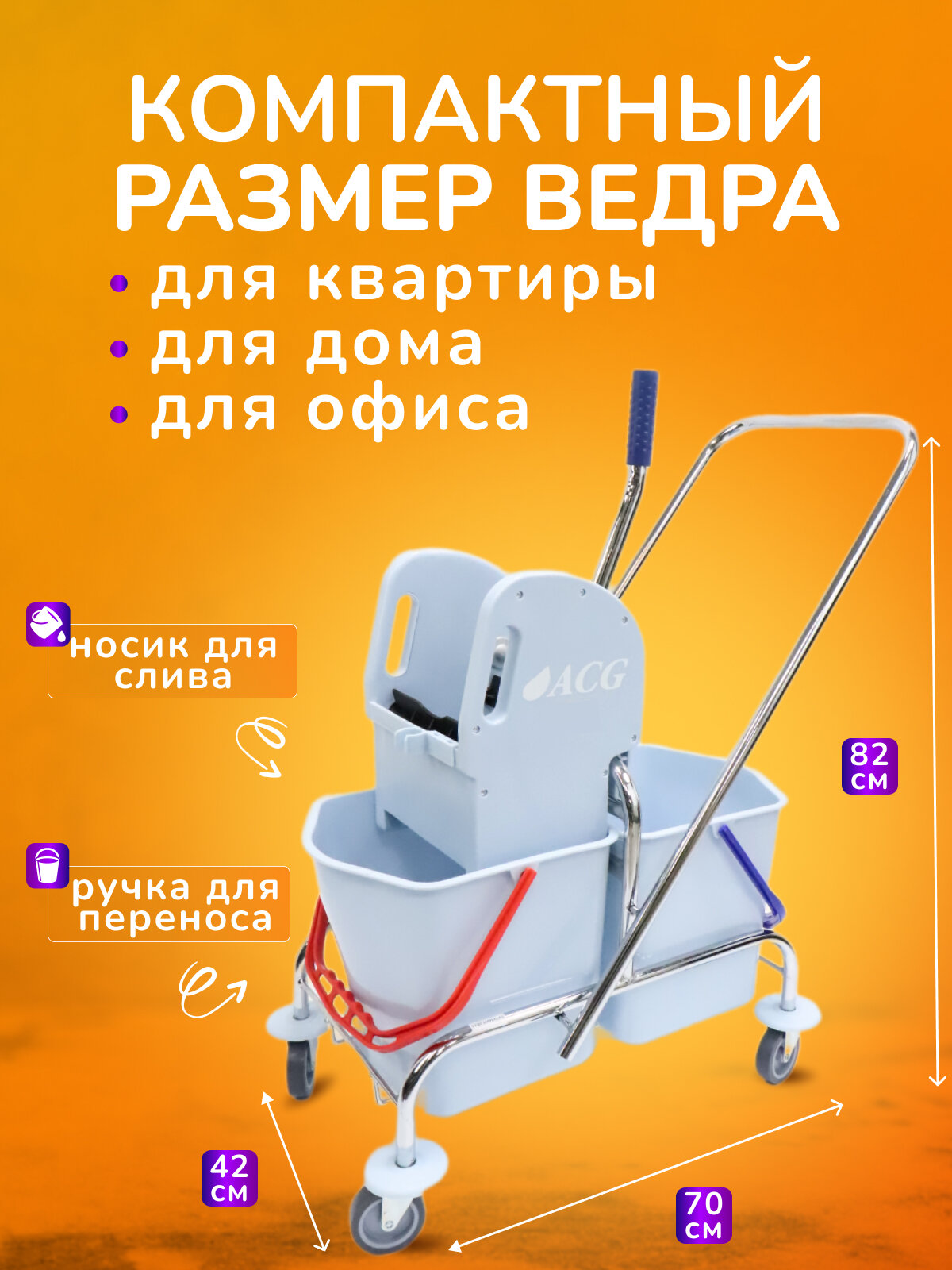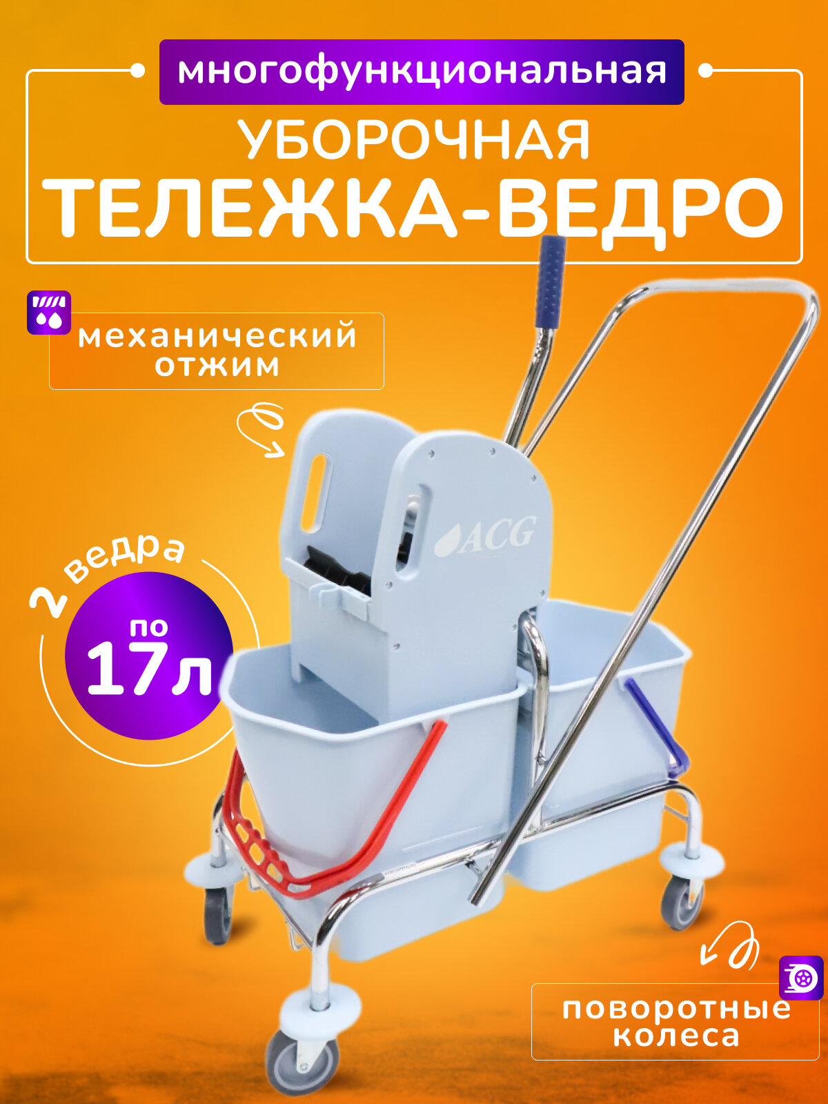 Тележка уборочная ACG 2х17л с отжимом, хром: сравнение цен, характеристики, фото, актуальное наличие и цены.