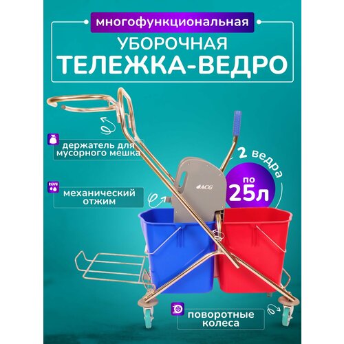 Тележка уборочная ACG многофункциональная, ведро 2*25л с отжимом и держателем для мешка: сравнение цен, характеристики, фото, актуальное наличие и цены.