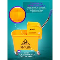 Тележка уборочная ACG, ведро двойное 20л, отжим механический, на колесах, желтый