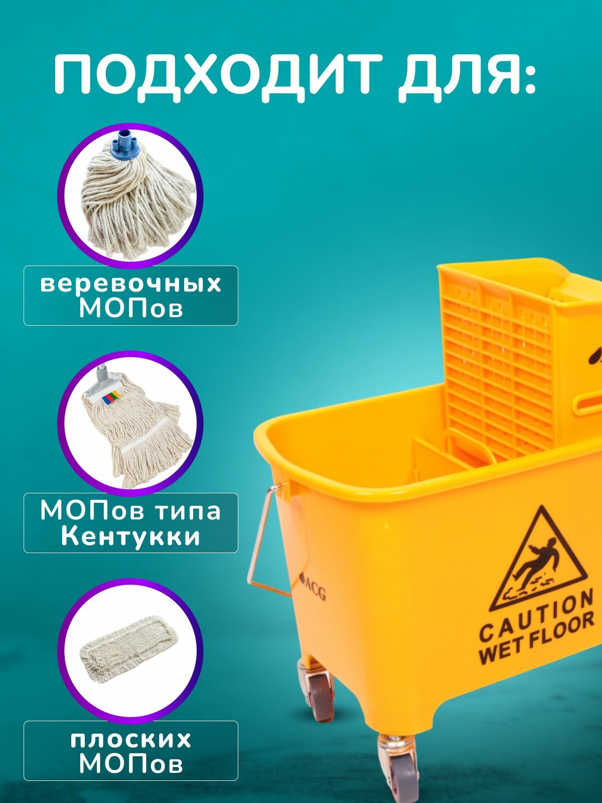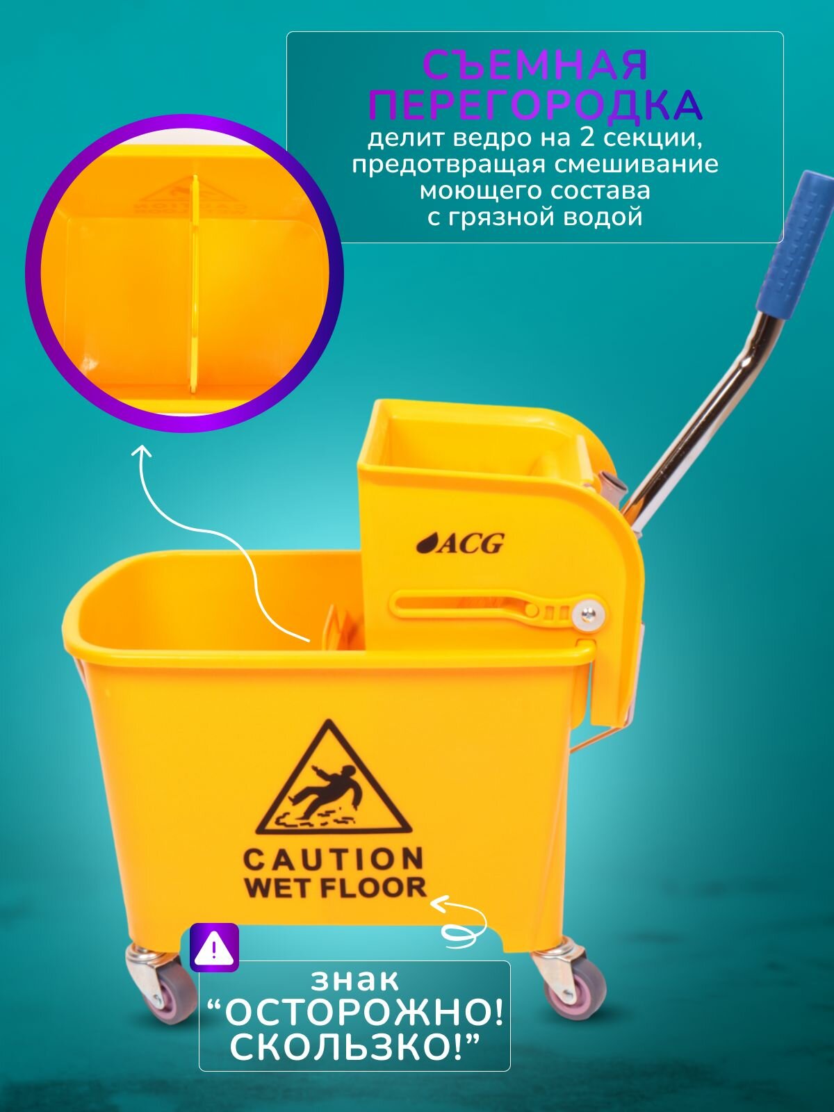 Тележка уборочная ACG, ведро двойное 20л, отжим механический, на колесах, желтый: сравнение цен, характеристики, фото, актуальное наличие и цены.