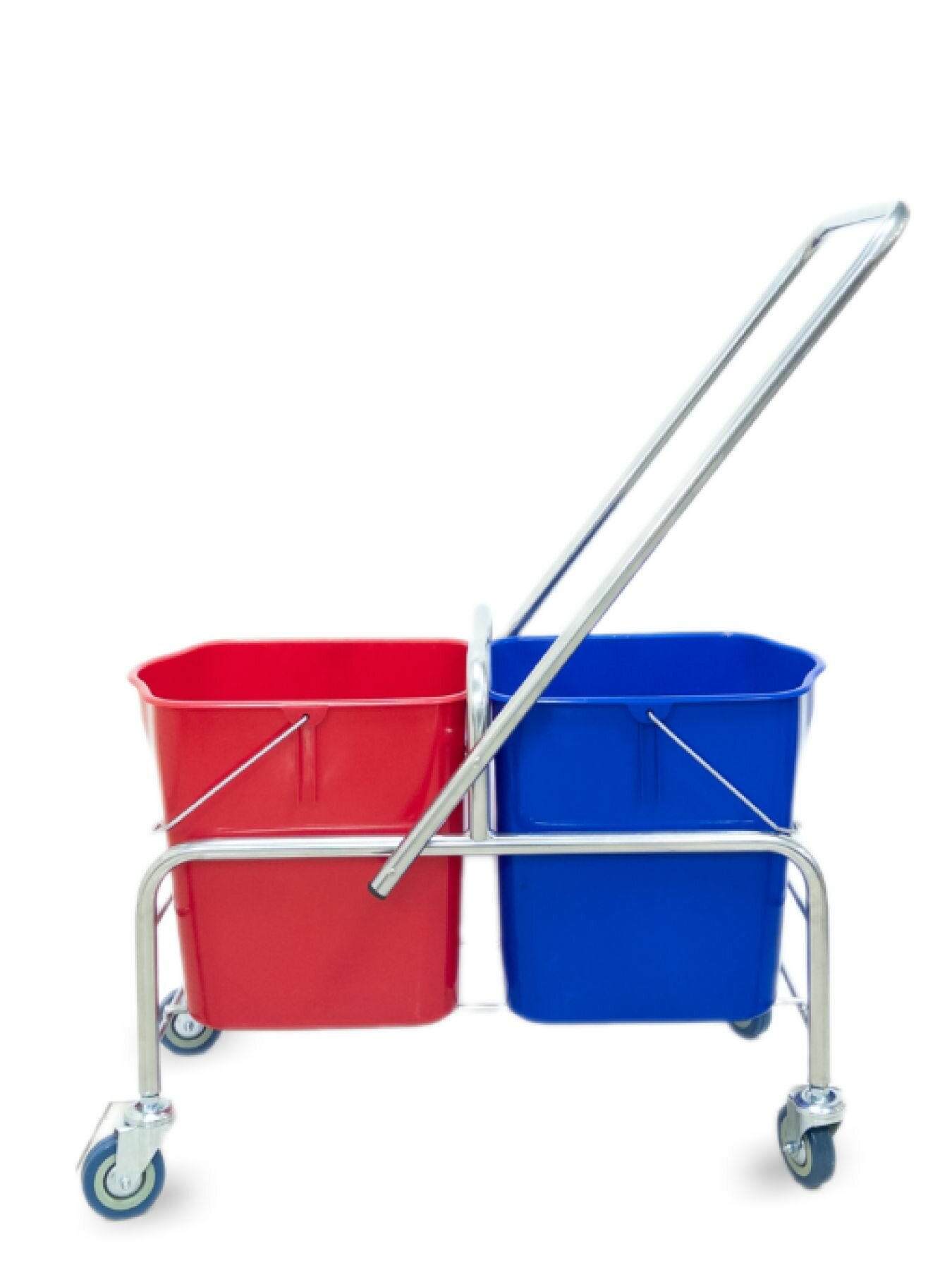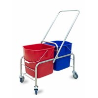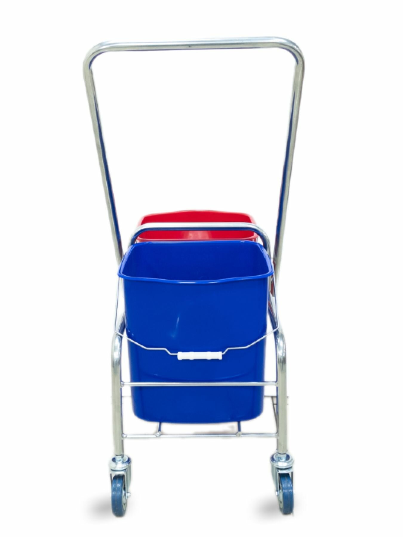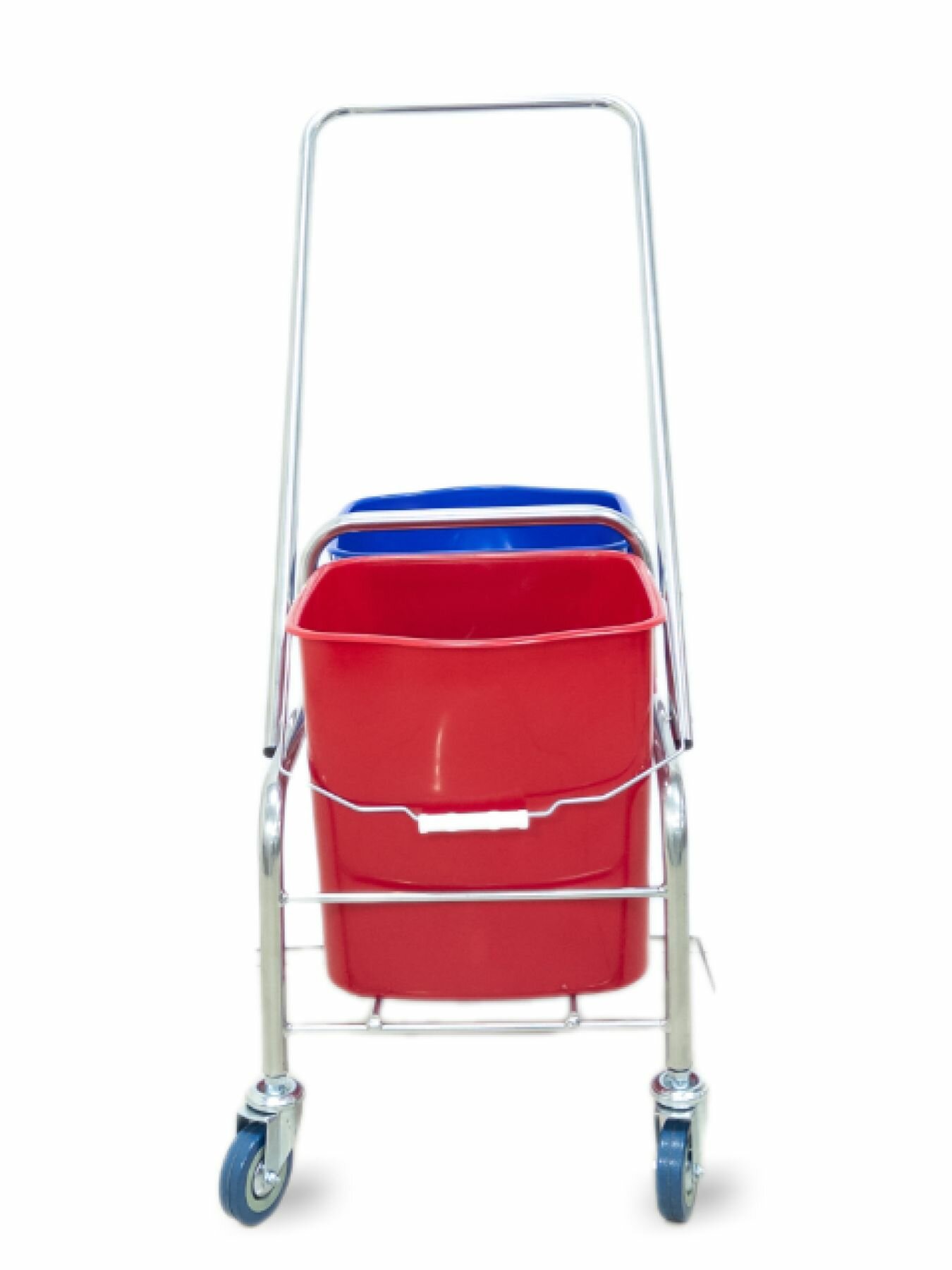 Тележка уборочная двухведерная, предназначена для уборки и мойки полов, перемещения моющих растворов и клининговых принадлежностей. Рама хромированная. В ведрах есть мерная шкала для удобства.