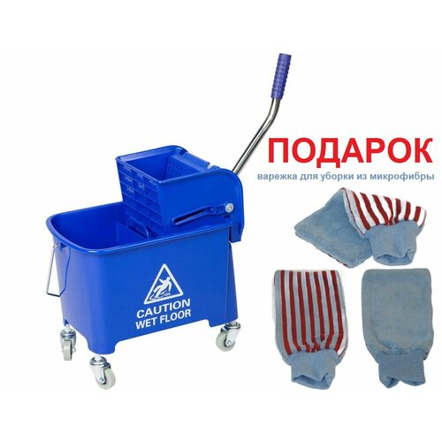 Ведро для уборки 20л ЭкоКоллекция с двумя отделениями и механическим отжимом, на колесах, синее - это удобное и функциональное решение для влажной уборки небольших помещений.