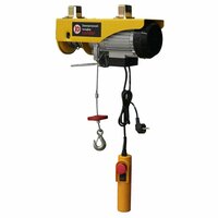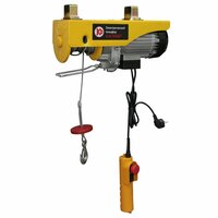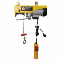 длина троса: 12 м, напряжение: 230 В; мощность двигателя: 1900 Вт; диаметр троса: 6,0 мм. Комплектация: электротельфер, полиспаст, скоба для крепления, комплект крепежа, паспорт, упаковка
