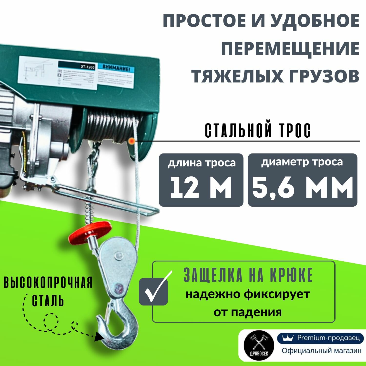 Электрический тельфер ЭТ- 1200 — это надёжный и удобный инструмент для различных грузоподъемных работ, который прослужит вам долгие годы. Тельфер станет незаменимым помощником в вашей работе и позволит значительно повысить её эффективность.