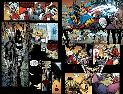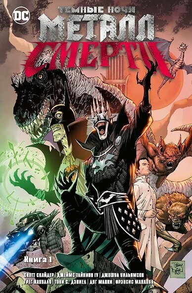 Описание комикса Темные ночи: Металл смерти. Книга 1: Мир окутан ужасом и тьмой: отныне он находится во власти Бэтмена, Который Смеется и матери самой Мультивселенной - Перпетуи. И пока остатки человечества пытаются выжить на изуродованной до неузнаваемости Земле, которую наводнили полчища злобных Темных Рыцарей, Чудо-Женщина, Бэтмен и Супермен вынуждены бороться за свое существование. У героев появляется рискованный план: вернуться к событиям уже минувших Кризисов и использовать их энергию, чтобы создать первый в своем роде Анти-Кризис - событие, которое восстановит Мультивселенную, вновь наполнив ее светом и надеждой. Вот только у Бэтмена, Который Смеется есть козырь в рукаве - и он пускает его в ход.