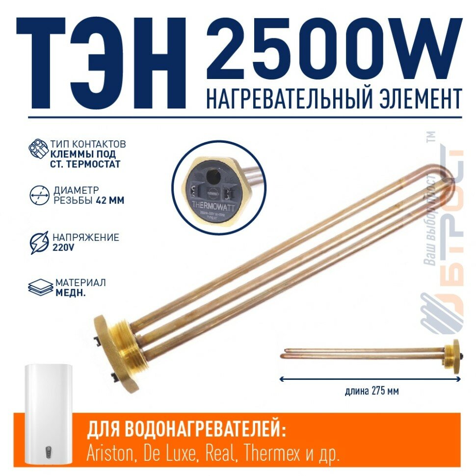ТЭН 2,5 кВт (2500 Вт) RDT, резьбовой 42 мм для Ariston, De Luxe, Real, Thermex, под анод М6, 182245: сравнение цен, характеристики, фото, актуальное наличие и цены.