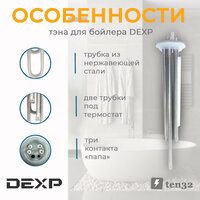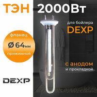 Купить ТЭН DEXP, для бойлера, 2000 Вт, на прижимном фланце, 64 мм, с анодом и прокладкой с доставкой по всей России.