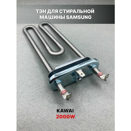 ТЭН для стиральных машин Samsung (Самсунг) без отверстия под датчик. Мощность нагревательного элемента 2000 Вт. Длина ТЭНа общая 208 мм. Длина внутренней части от фланца 177 мм. Изогнутая часть 130 мм. Нагреватель подключается на 2 клеммы шириной 6 мм, напряжение сети 220 -240 вольт. Резинка 11 мм без бортика. Для защиты от перегрева и короткого замыкания ТЭН оснащен двумя термо предохранителями. Производство Kawai. Маркировка 230529, парт номер DC47-00006V. Взаимозаменяем с DC47-00006Q. Запасная часть может подбираться по образцу или модели вашей стиральной машины.