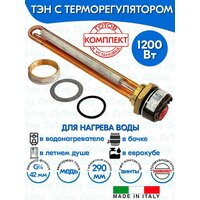 ТЭН с терморегулятором предназначен для работы в водной среде. Изготовлен из медного сплава, обладает высокой теплоотдачей. Широко используется для нагрева воды в различных емкостях, как в бытовом, так и в промышленном применении - водонагреватели бытовые с посадочной резьбой G1¼ (42мм), летние души с емкостями из пластика и металла, пластиковые кубы и бочки разных объемов, промышленные баки, самогонные аппараты. Устанавливаются в некоторые модели водонагревателей ARISTON, THERMEX, GORENJE, De Luxe и во многих других марках.