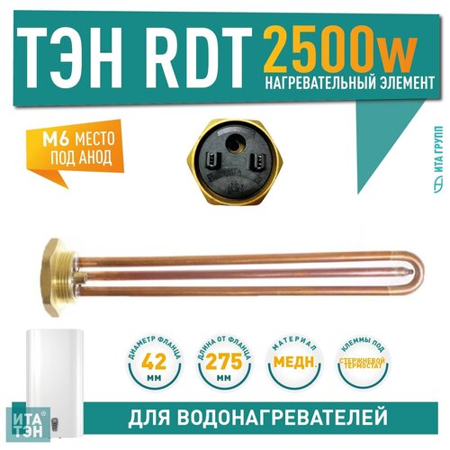 Купить ТЭН RDT 2500W, медь, Ø42мм, М6, клеммы под стержневой термостат, вертикальный, 220V, 30248 с доставкой по всей России. ТЭН RDT 2500W, медь, Ø42мм, М6, клеммы под стержневой термостат, вертикальный, 220V, 30248: сравнение цен, характеристики, фото, актуальное наличие и цены.