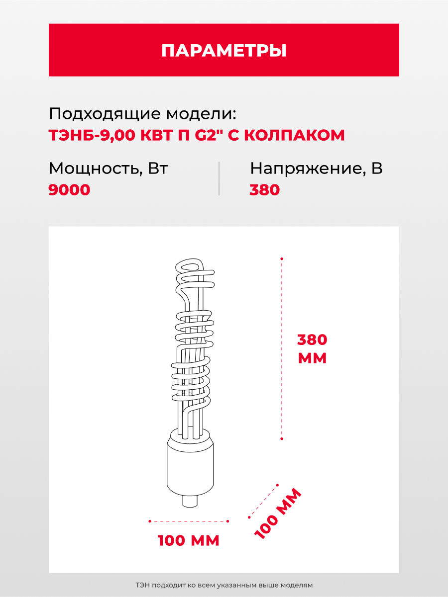 Купить ТЭНБ-9,00 кВт П G2″ с колпаком, Zota с доставкой по всей России. ТЭНБ-9,00 кВт П G2″ с колпаком, Zota: сравнение цен, характеристики, фото, актуальное наличие и цены.