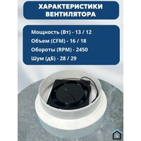 Бесшумный вентилятор, мощностью (дБ) - 28 / 29, интегрированный в конструкцию, гарантирует эффективную и тихую циркуляцию воздуха, что особенно актуально в помещениях с повышенной влажностью.