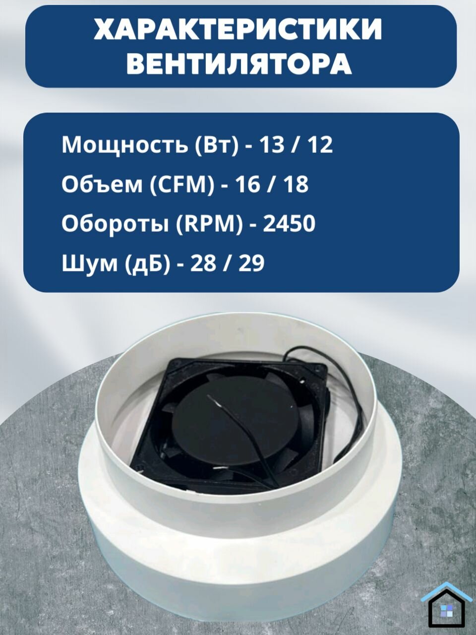 Теневой диффузор с бесшумным съёмным вентилятором на трубу диаметром 100 - мм.