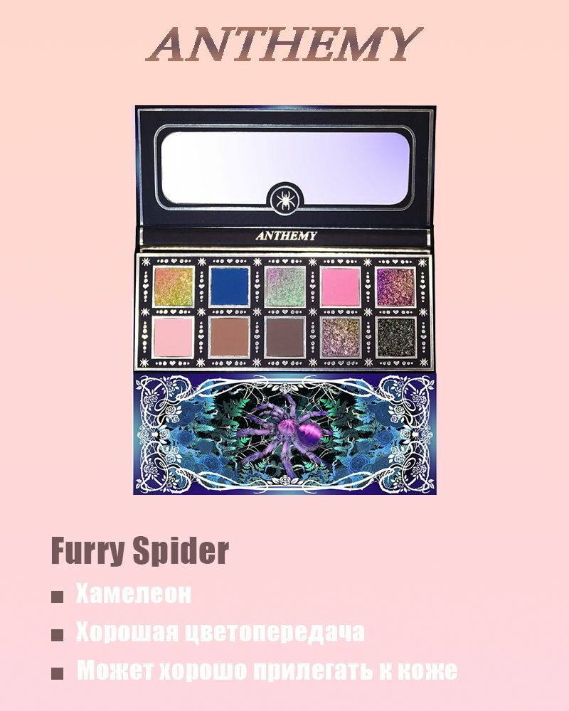 Палитра теней для век ANTHEMY, 5 матовых + 5 перламутровых, 8 г — Furry Spider