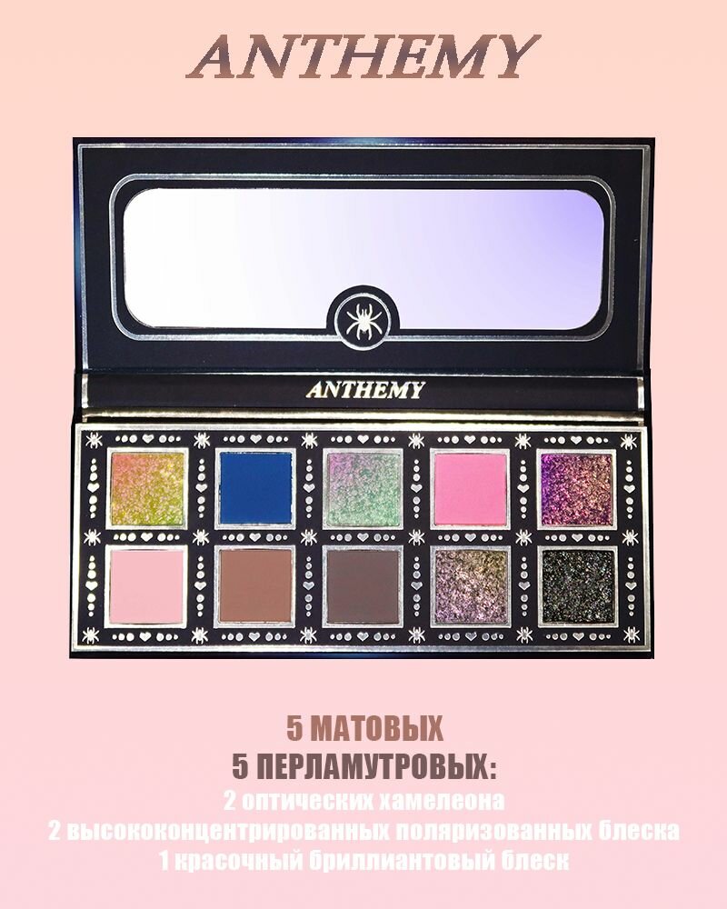 Купить Палитра теней для век ANTHEMY, 5 матовых + 5 перламутровых, 8 г — Furry Spider с доставкой по всей России.