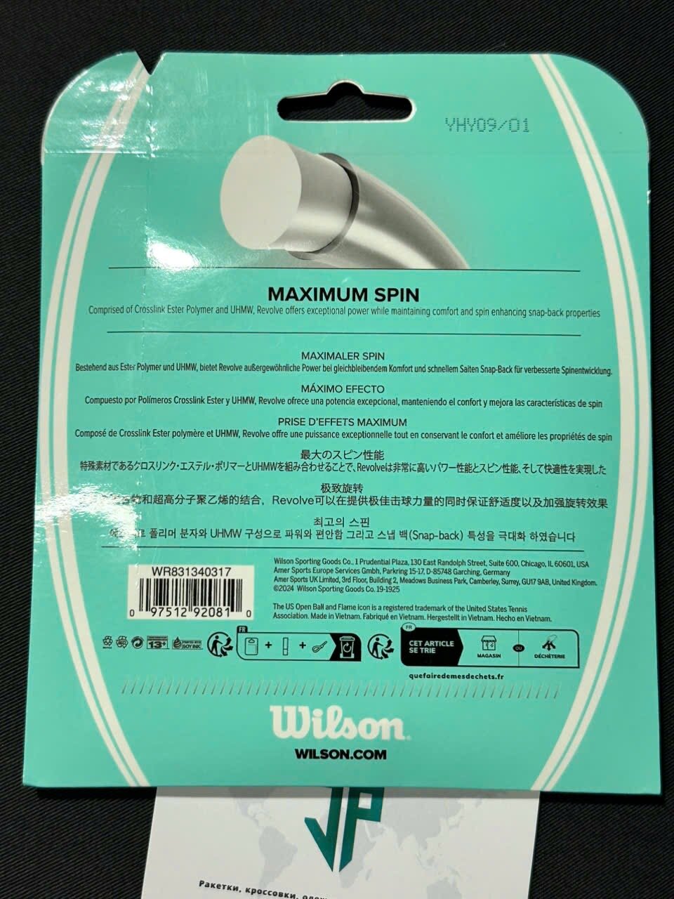 Wilson Revolve — струна, обеспечивающая исключительную мощность, комфорт и превосходное вращение. Изготовлена из триполимера с добавкой для снижения трения, она позволяет струнам легче возвращаться в исходное положение, усиливая спин и стабильность удара.