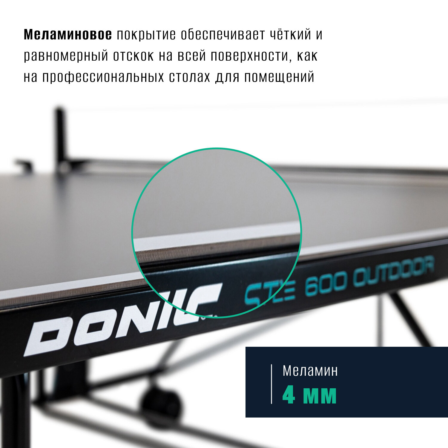 Универсальный стол для настольного тенниса - DONIC STYLE 600, предназначенный для использования на свежем воздухе. Стол изготовлен из высококачественной меламина и обладает оптимизированной технологией создания меламиновой поверхности для обеспечения долговечности и надежности. Толщина покрытия составляет 4 мм антрацитового цвета, что придает столу стильный и современный вид.