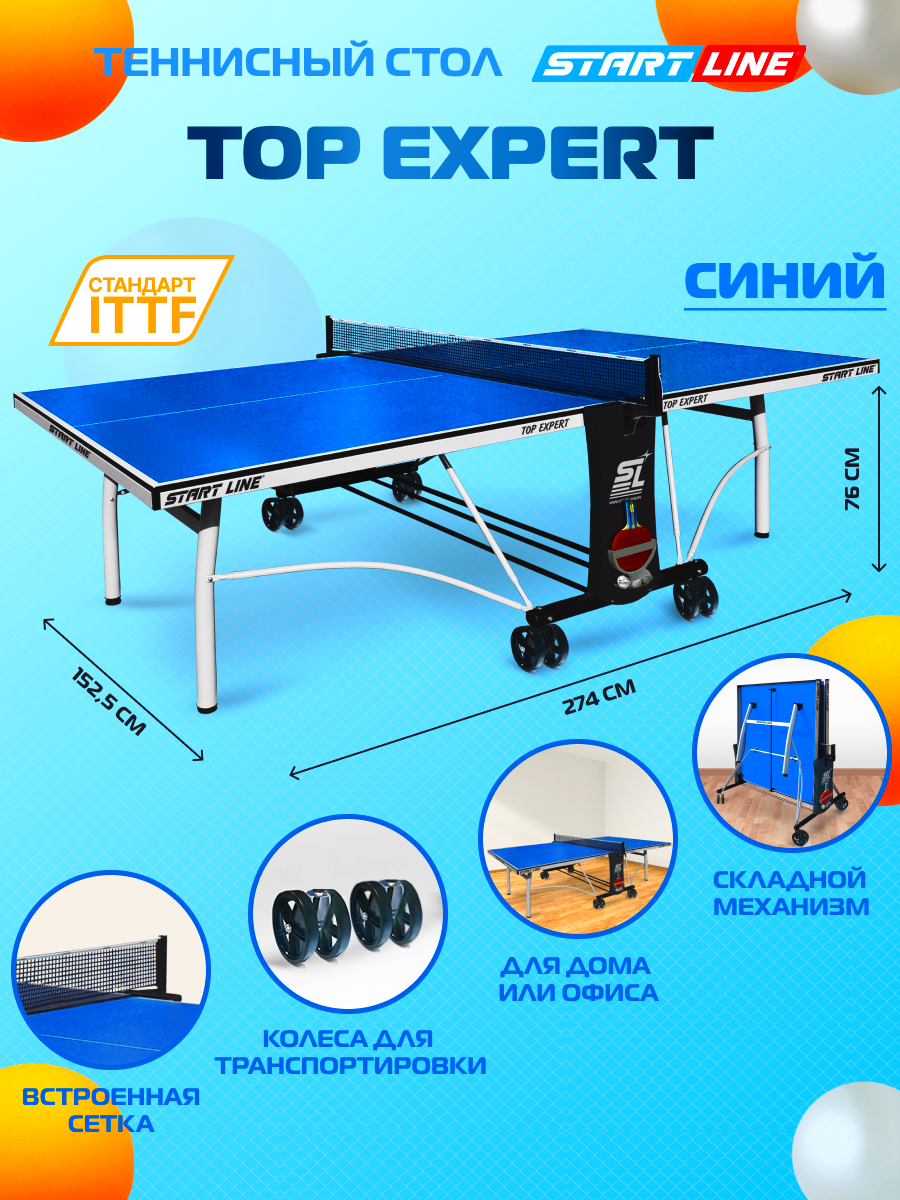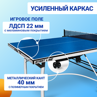 Размер теннисного стола соответствует международным стандартам. Стол укомплектован столешницей из лмдф 16 мм, благодаря повышенной плотности этого материала обеспечивается лучший отскок мяча в сравнении с ЛДСП 16 мм. Новая система складывания — собственная уникальная разработка Start Line – предусматривает усовершенствованный механизм: специальные фиксаторы позволяют закреплять положение стола как в разложенном, так и в сложенном виде. А после игры стол можно компактно сложить. С такой системой складывания может легко справиться один человек.