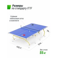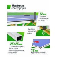 | Подробная комплектация | стол, сетка нейлон, 2 ракетки, 3 шарика |