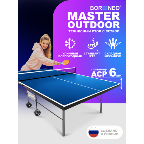 Купить Теннисный стол всепогодный, для улицы Bor Neo MASTER OUTDOOR 6 мм АКП, синий, складной с доставкой по всей России.