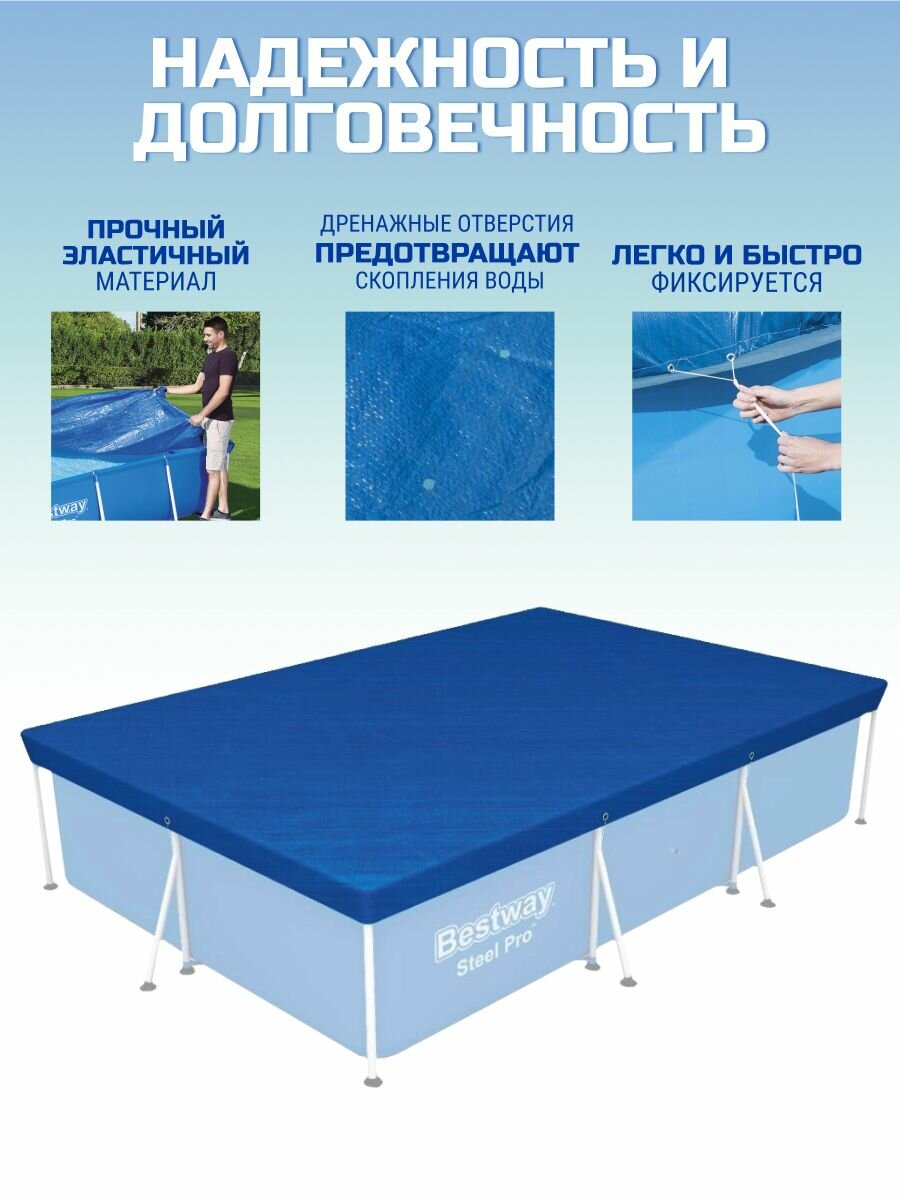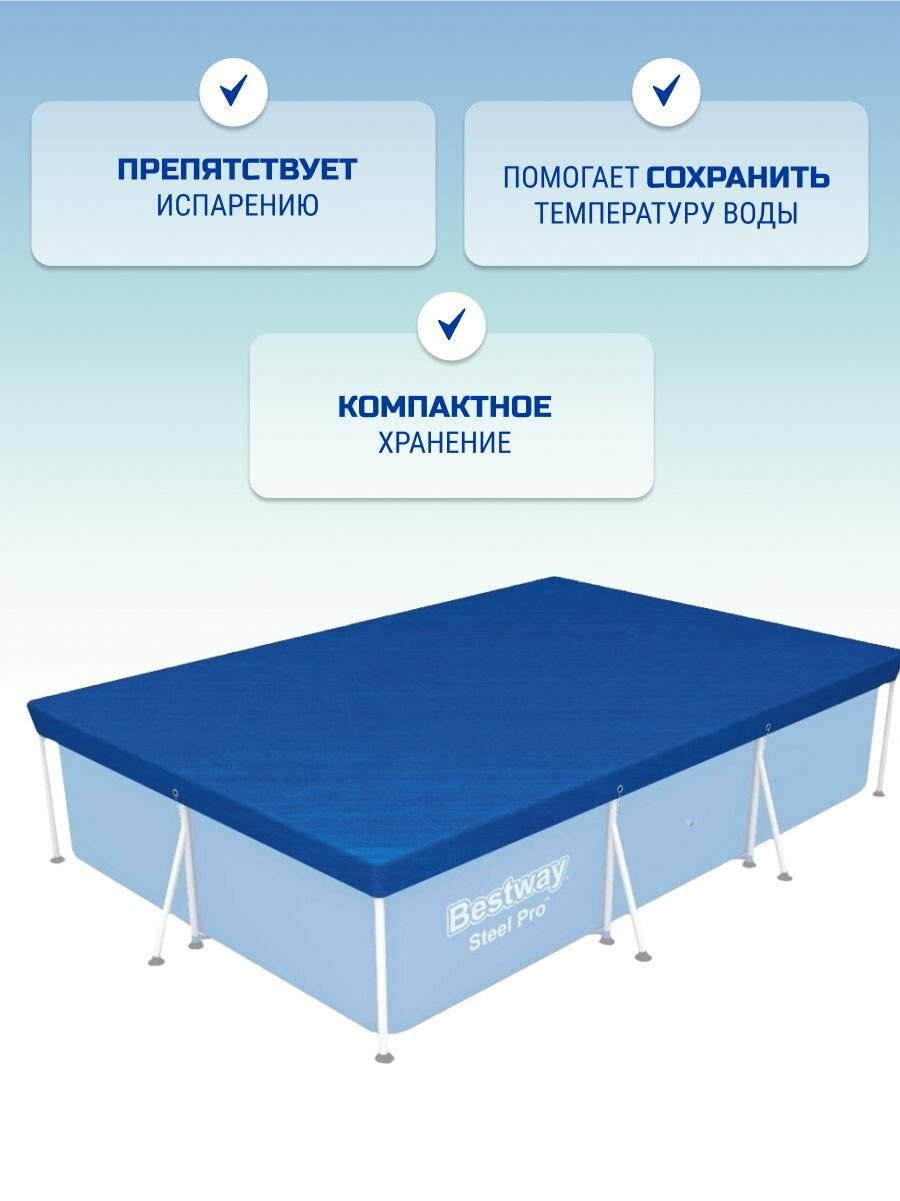 Тент 174х264 см, прямоугольный, для каркасного бассейна, для бассейнов 259×170 см, Bestway, 58105: сравнение цен, характеристики, фото, актуальное наличие и цены.