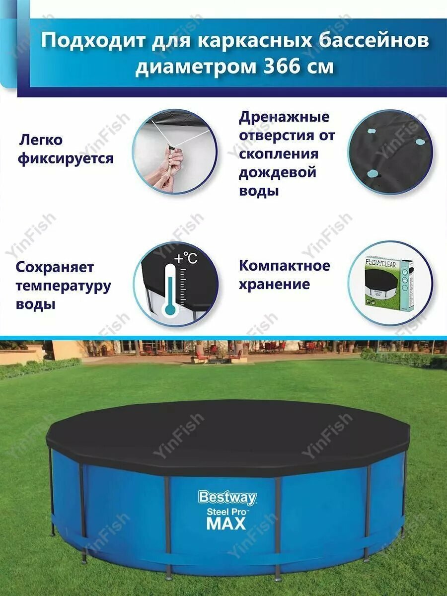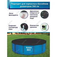 Тент для бассейна Bestway 58037, черный/синий, для каркасных бассейнов, 366см: сравнение цен, характеристики, фото, актуальное наличие и цены.