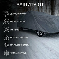 Тент чехол защитит ваш автомобиль от любых погодных условий. Тент можно использовать как в паркинге или гараже, так и на улице, защищая от УФ-лучей, дождя, пыли, грязи, птичьего помета, снега, почек от деревьев и прочих внешних факторов, поможет сохранить ее в идеальном состоянии. Тент всепогодный и всесезонный. Легко устанавливается и снимается, подходит для седанов, кроссоверов, хэтчбеков и универсалов.