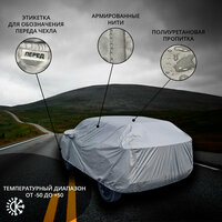 Тент чехол защитит ваш автомобиль от любых погодных условий. Тент можно использовать как в паркинге или гараже, так и на улице, защищая от УФ-лучей, дождя, пыли, грязи, птичьего помета, снега, почек от деревьев и прочих внешних факторов, поможет сохранить ее в идеальном состоянии. Тент всепогодный и всесезонный. Легко устанавливается и снимается, подходит для седанов, кроссоверов, хэтчбеков и универсалов.