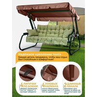 По углам имеются кармашки, в которые вставляются углы каркаса крыши и завязки для дополнительной фиксации. Так же имеются каналы, через которые проходят дуги каркаса крыши качелей.