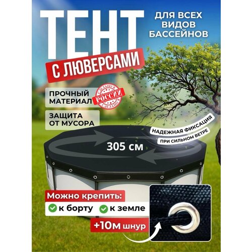 Тент для бассейна диаметром 305 см с люверсами — это эффективное решение для защиты воды от мусора, листвы, пыли и насекомых. Плотная структура материала и продуманная форма обеспечивают плотное прилегание, предотвращая загрязнение воды. Люверсы по краям позволяют легко зафиксировать тент, а шнур черного цвета 10 метром в комплекте обеспечивает надежную фиксацию. С тентом уход за бассейном становится проще, а время на его обслуживание сокращается. Тент выполнен из высококачественного спанбонда, который отличается высокой прочностью и устойчивостью к влаге, ультрафиолету и перепадам температур. Материал не теряет цвет под воздействием солнца, не растрескивается и сохраняет свои свойства на протяжении долгого времени. Более того, спанбонд пропускает испарения, что позволяет воде "дышать". Это исключает появление неприятных запахов и плесени, поддерживая здоровую атмосферу в бассейне. Дополнительно тент снижает испарение влаги, что позволяет экономить воду. Это особенно важно в жаркую погоду, когда вода испаряется быстрее. В сравнении с навесами и зонтами, тент имеет явные преимущества. Зонты и навесы защищают только от солнца, оставляя воду открытой для мусора и насекомых. Тент полностью закрывает поверхность бассейна, предотвращая загрязнение и избыточное испарение воды. Кроме того, он упрощает поддержание чистоты, снижая потребность в частой фильтрации и использовании химических средств. Установить тент на бассейн не составит труда. Легкий материал удобно натягивается, а по периметру предусмотрен прочный фиксирующий шнур, который надежно удерживает тент даже при сильном ветре. Для удобства хранения в комплекте поставляется компактная сумка, в которой тент можно аккуратно сложить. Этот тент станет незаменимым аксессуаром для вашего бассейна. Он сочетает в себе функциональность, надежность и простоту использования, создавая комфортные условия для отдыха и минимизируя усилия на уход за водой.