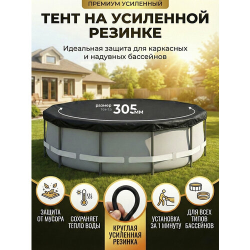 Тент-чехол Premium с усиленной резинкой по периметру для бассейна (305 см) – надежная защита и безупречное качество!