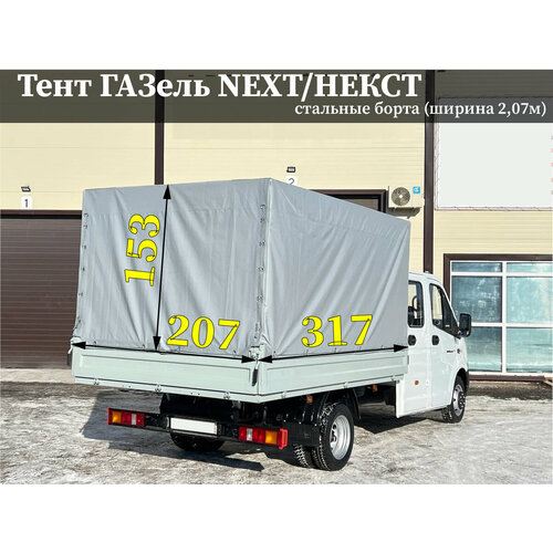Тент для автомобиля Газель NEXT/НЕКСТ 3,17м (стальные борта, ширина 2,07м, 6 люверсов) предназначен для установки на заводской кузов и стандартный каркас. Кузов данной модели имеет по шесть креплений (скоб) на левом и правом бортах, которые служат для крепления тента тросом. Высота каркаса от пола платформы 180 см. Каркас имеет плоскую форму крыши.