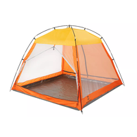 Одна сторона шатра из полиэстера, защищает от ветра легкого дождя, также является дверью с молнией по центру, удобно сворачивающейся в стороны Три другие стороны из москитной сетки позволяют шатру отлично проветриваться, защищая от насекомых Дверь из москитной сетки с молнией по центру, удобно сворачивается в стороны Каркас выполнен из прочного стеклопластика Дно изготовлено из прочного армированного полиэтилена