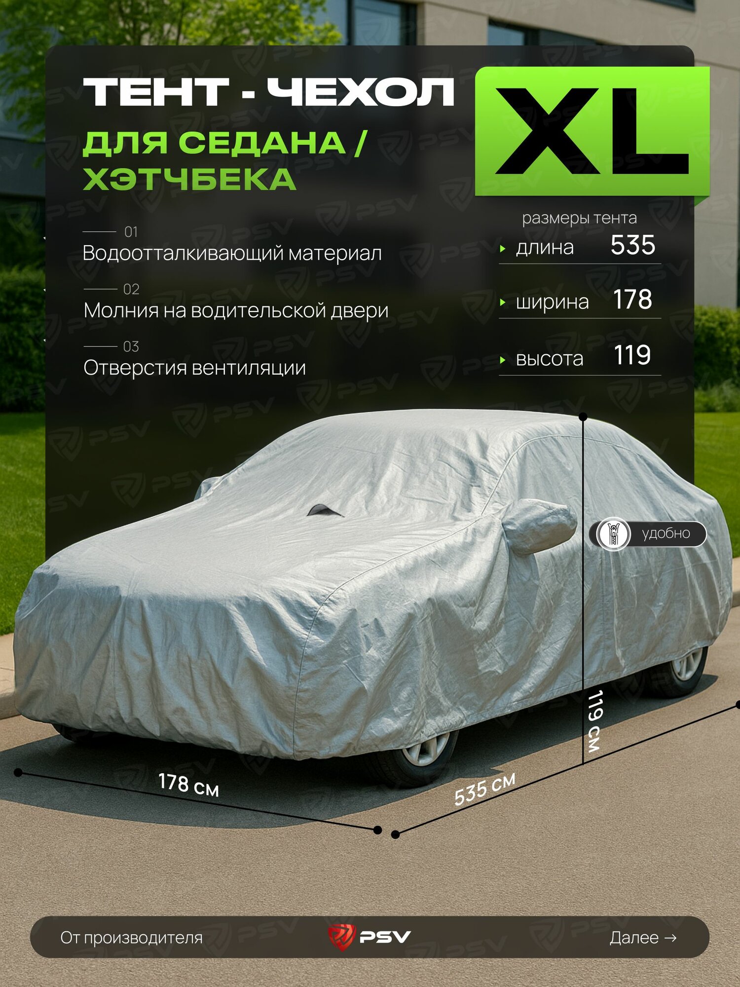 Тент чехол на автомобиль для седана и хетчбека PSV с молнией на водительской двери, размер XL: сравнение цен, характеристики, фото, актуальное наличие и цены.