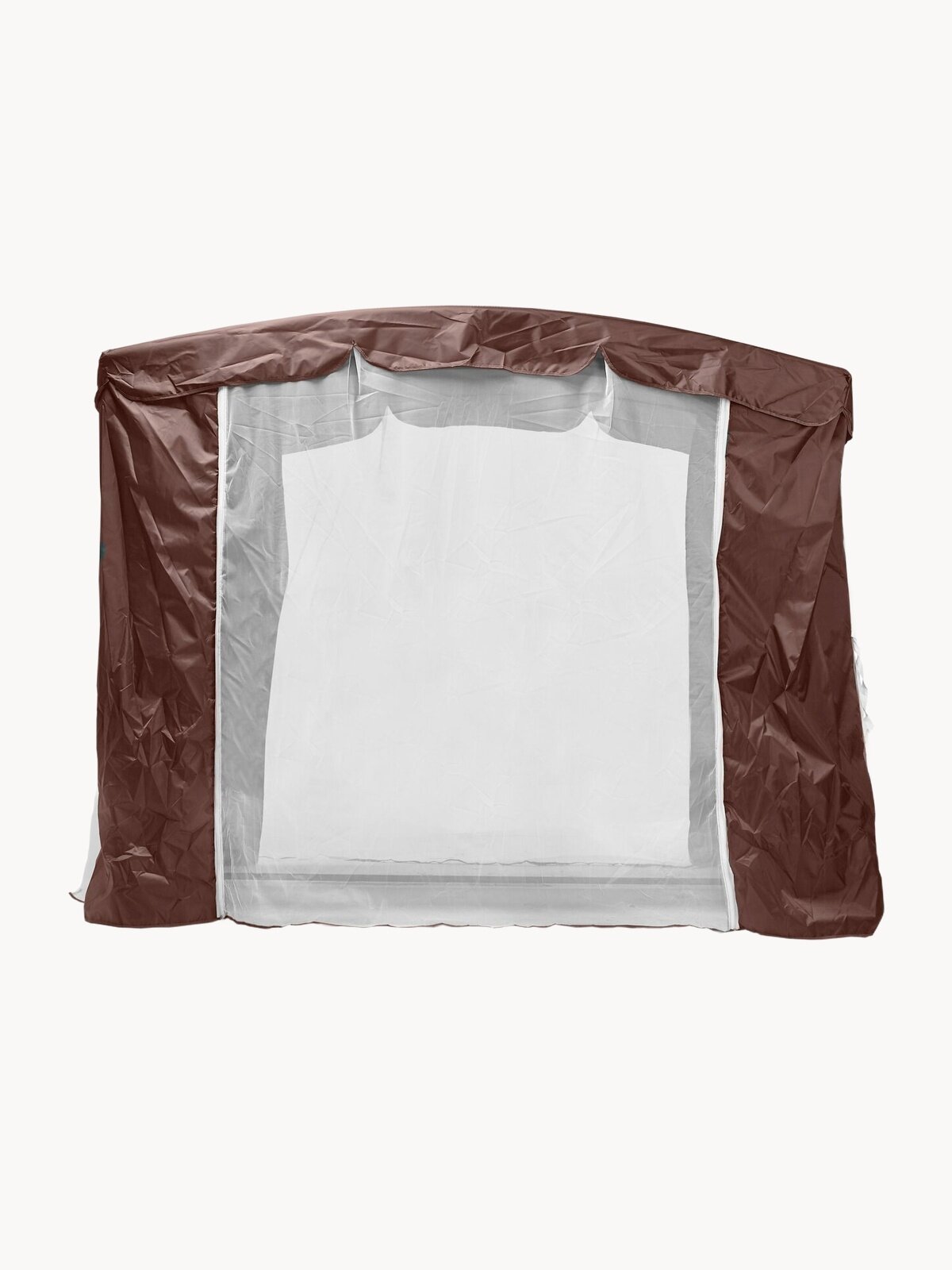 Универсальный тент - крыша для садовых качелей обеспечит надежную защиту от солнца, дождя и ветра. Тент изготовлен из высококачественного водонепроницаемого материала Оксфорд 210. Материал износостойкий. Изделие прослужит несколько сезонов, без потери внешнего вида. Пропитка DWR (Durable Water Repellent) препятствует сквозному намоканию, влага скатывается с поверхности и не попадает в структуру материала. Ткань обладает UV-защитой, что позволит спокойно отдыхать даже в самые жаркие дни, не боясь нежелательных солнечных ванн. Антимоскитная сетка (АМС) белого цвета со ставками по углам из ткани, обеспечит зашиту от насекомых. АМС можно полностью закрыть или открыть с помощь замков "молния", расположенных по двум углам передней стороны качелей. В комплете с тентом для садовых качелей мы предлагаем удобную транспортировочную сумку.