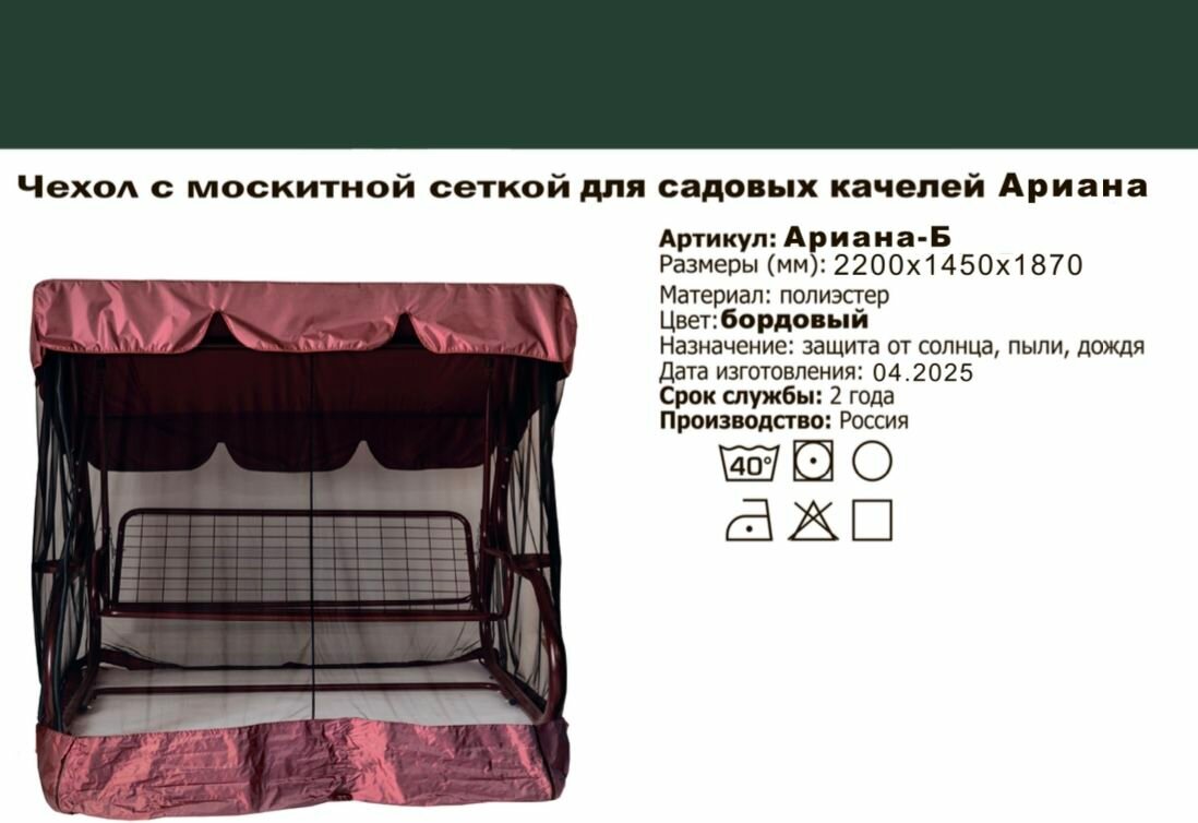 Тент с москитной сеткой для садовых качелей Ариана, 2200х1450х1870 мм, Бордовый, Green Gard: сравнение цен, характеристики, фото, актуальное наличие и цены.