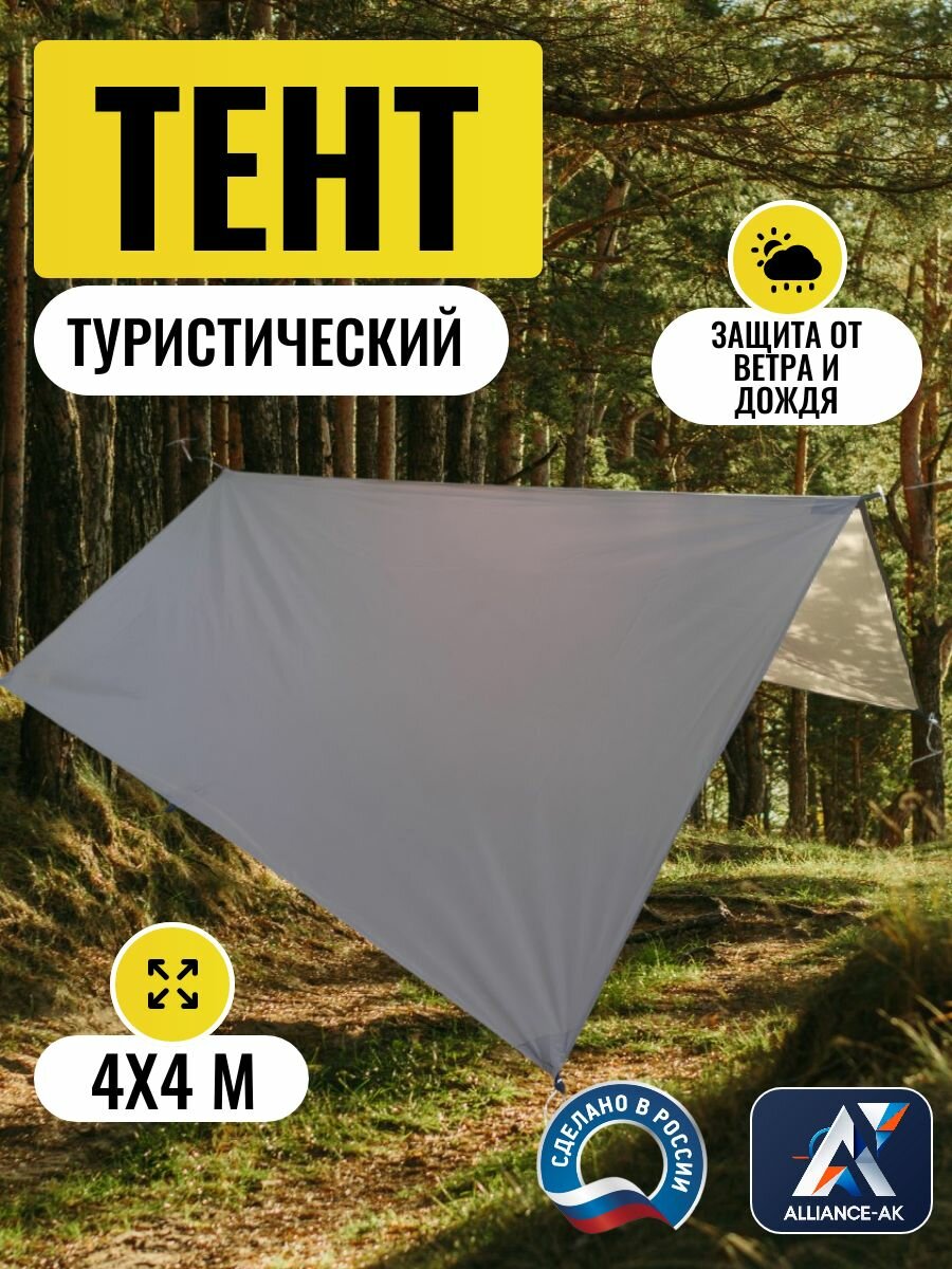 Тент туристический 4Х4м, Оксфорд 210, серый: сравнение цен, характеристики, фото, актуальное наличие и цены.