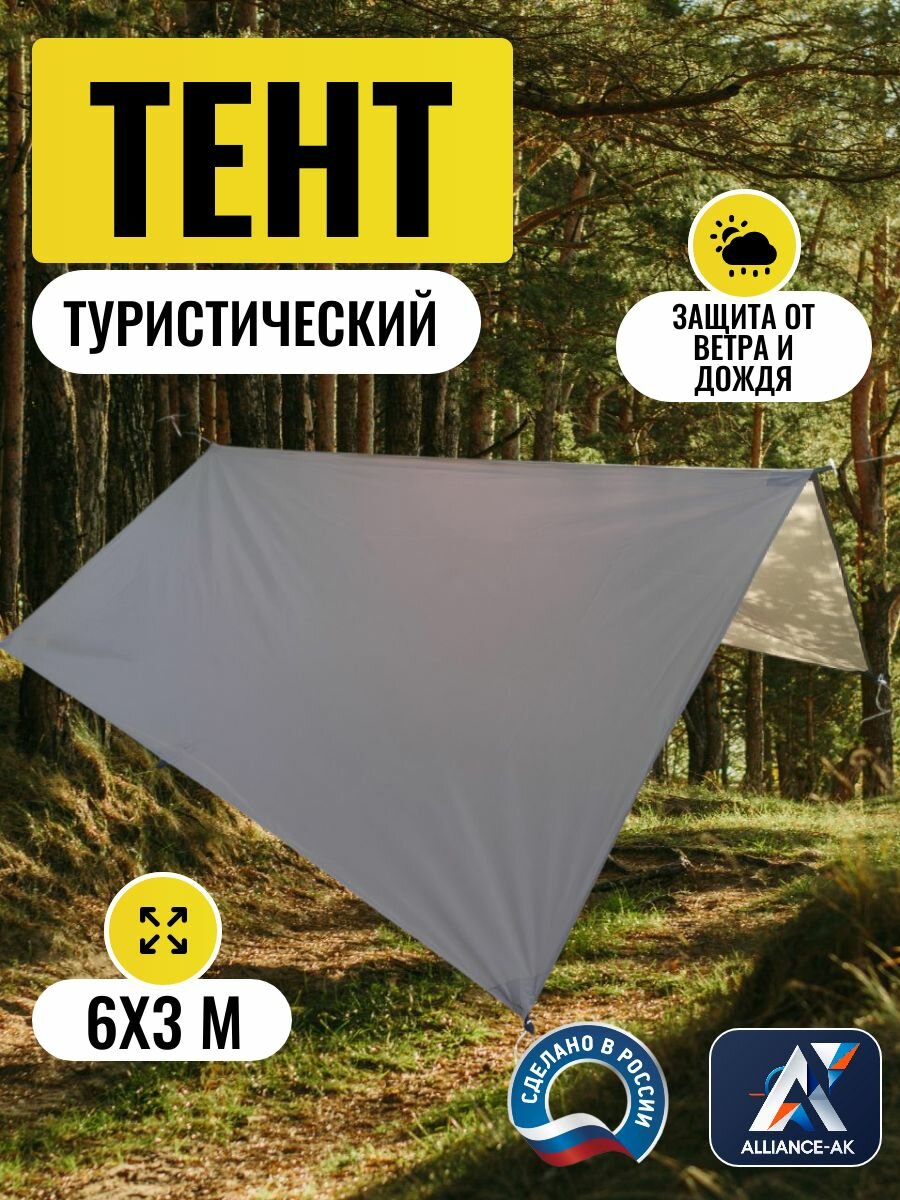 Тент туристический 6Х3м, Оксфорд 210, серый: сравнение цен, характеристики, фото, актуальное наличие и цены.