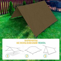 Тент отлично защищает от дождя и солнца, поэтому идеально подходит для кемпинга, походов и других видов активного отдыха. Полог туристический можно быстро установить и снять, что делает его незаменимым в долгих путешествиях.
