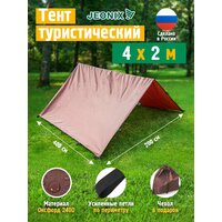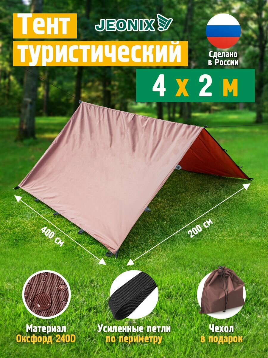 Тент туристический, JEONIX, двухскатный, водонепроницаемый (4 х 2 м) коричневый